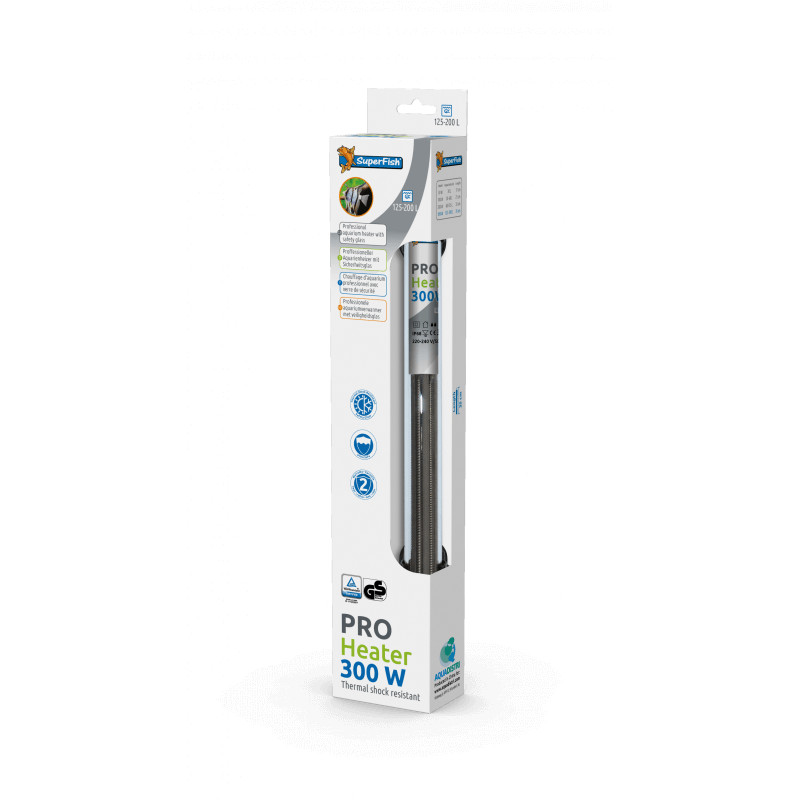 Chauffage d‘aquarium professionnel avec verre de sécurité borosilicate résistant aux chocs thermiques.